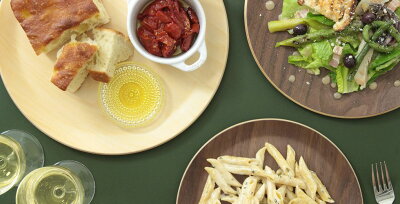 横長のプレートにハム、オリーブ、チーズ……それとも紅茶とお菓子でティータイム? 組み合わせはあなた次第。