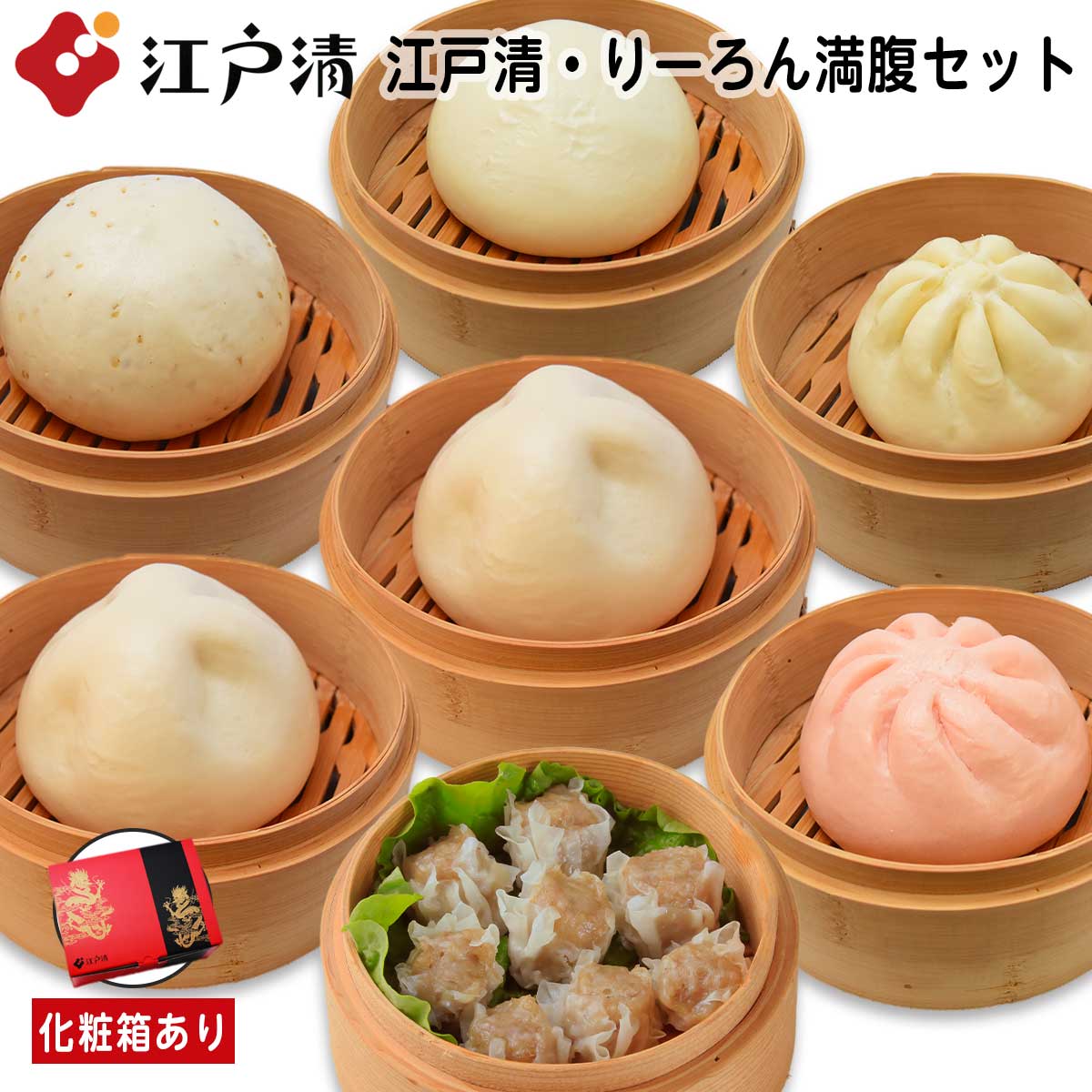 【江戸清 りーろん 満腹セット】ブタまん クルミ入り黒ゴマあんまん エビ入りシウマイ りーろんフカヒレ豚まん りーろん青菜肉まん りーろんXO醤入り海老まん ギフト 送料込み 豚まん 肉まん 中華 お歳暮 取り寄せ 贈り物 横浜 横浜中華街 のし対応 熨斗